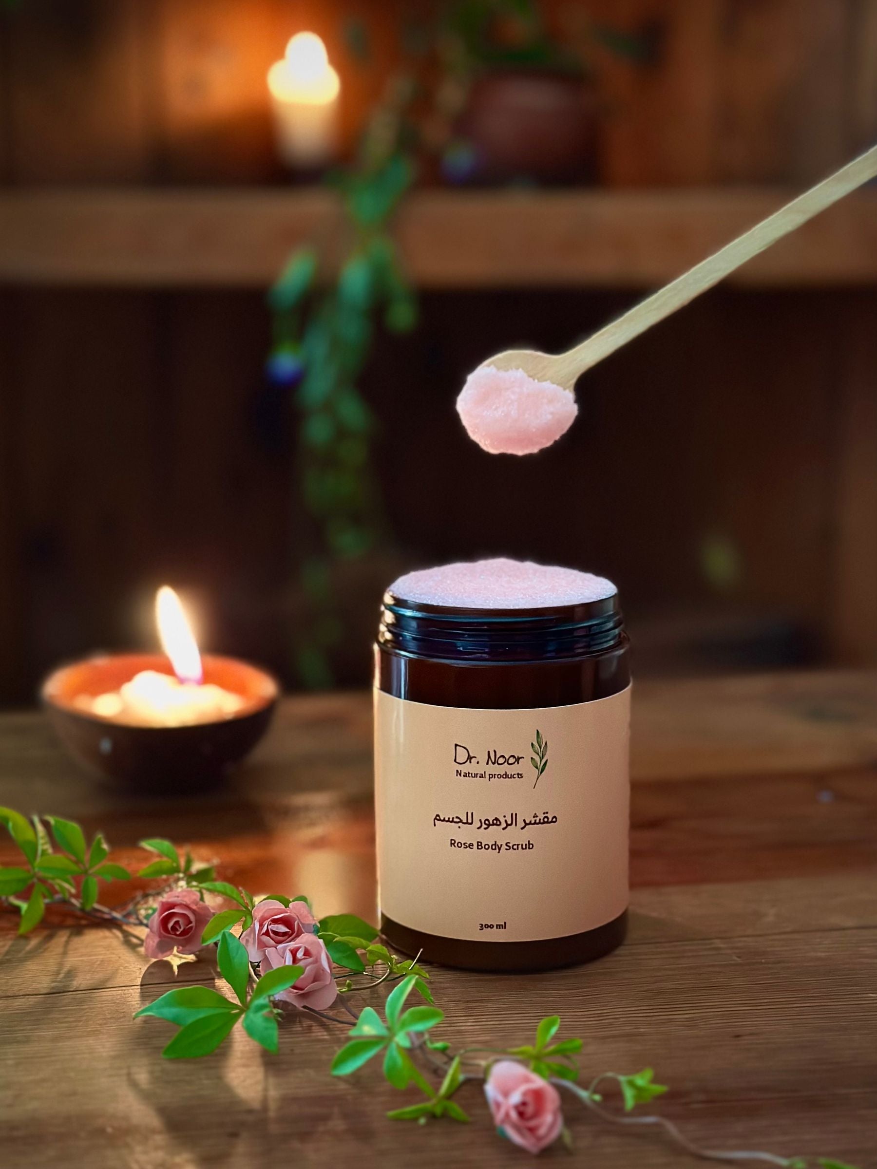 مقشر الورد للجسم – تجربة تقشير فاخرة تمنحك نعومة وانتعاشًا برائحة الورد الساحرة.