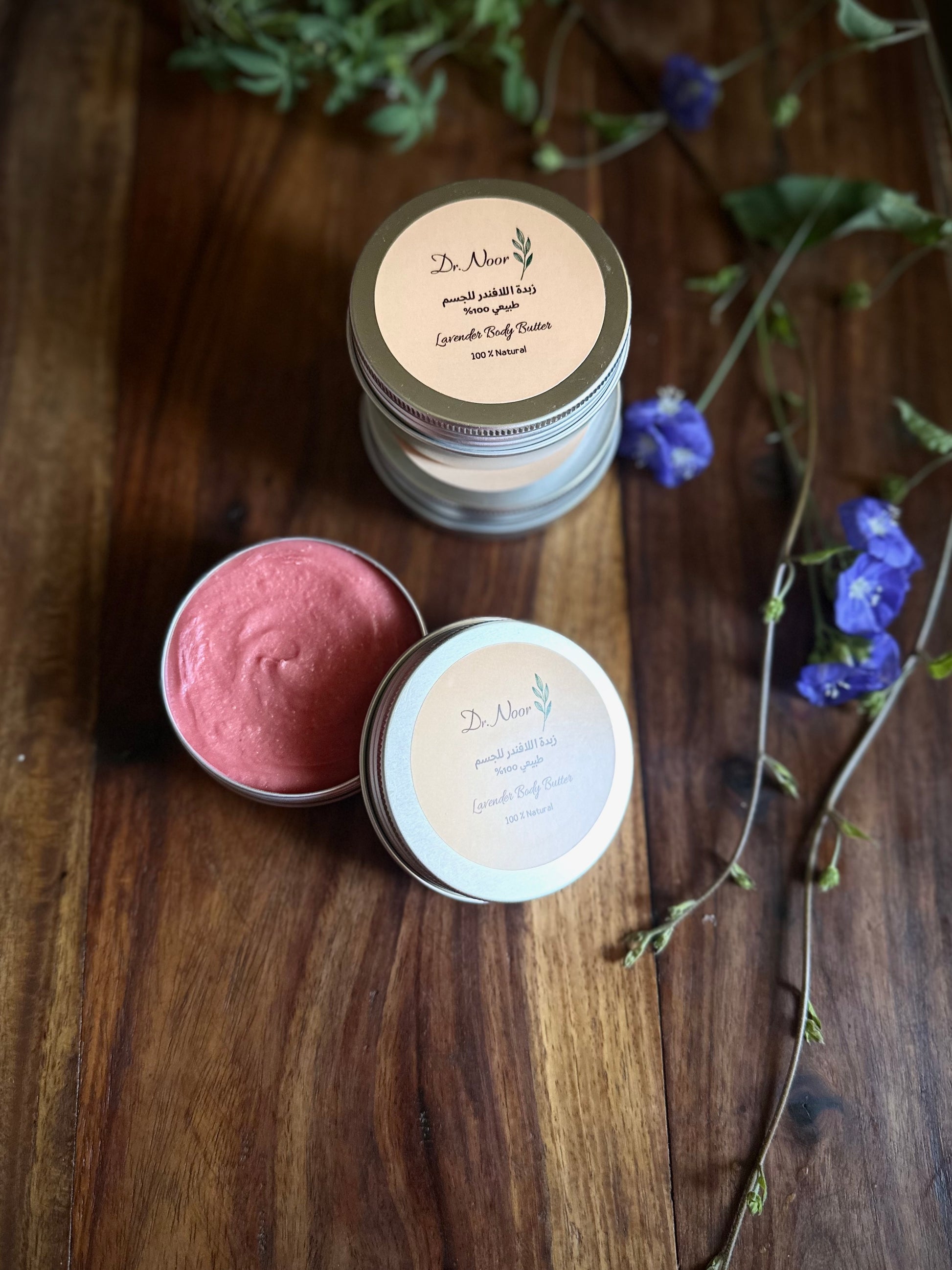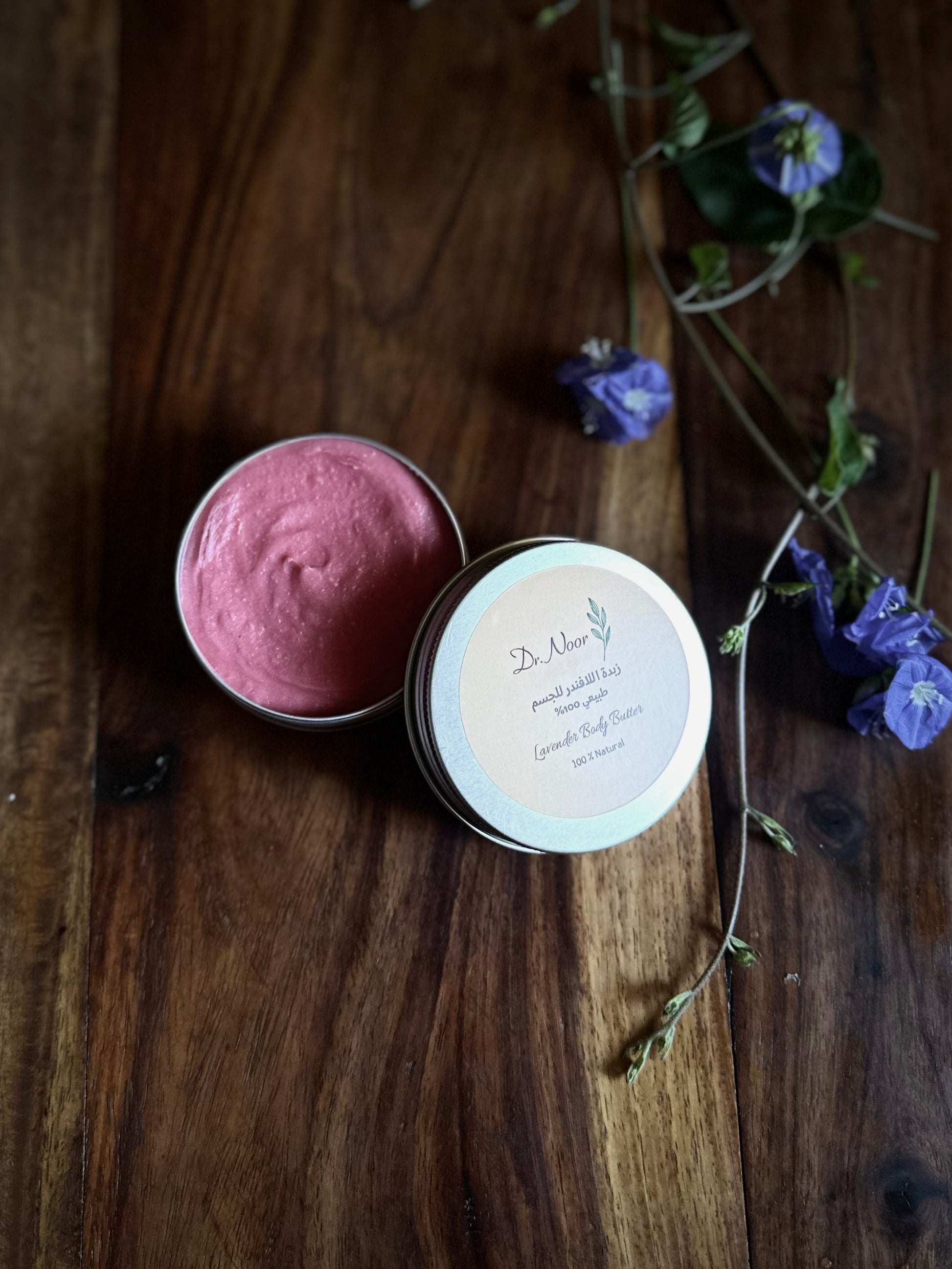 زبدة الجسم باللافندر! يرطب البشرة ويغذيها بعمق، مما يساعد على تقليل الجفاف وتحسين مرونتها. بفضل خصائصه المهدئة والمنعشة، فإنه يعزز الاسترخاء والراحة. استخدمي زبدة الجسم باللافندر بانتظام في جميع أنحاء جسمك للحصول على بشرة ناعمة ومشرقة.