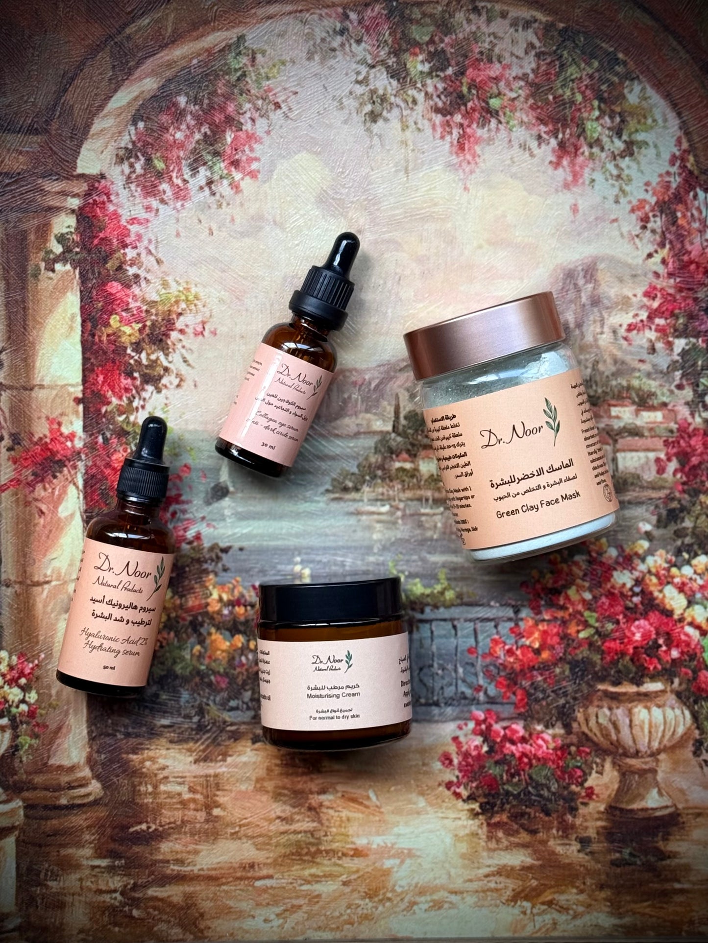 Discover one of our most powerful natural products for hydrating and firming the skin. The Hydrating and Firming Skin Set includes Hyaluronic Serum and Korean Moisturizing Cream. The Hyaluronic Serum helps to firm the skin and reduce wrinkles, while the Korean Moisturizing Cream works to hydrate the skin and even out its tone. Use this set to enhance the moisture of your skin and achieve a firm and even appearance.